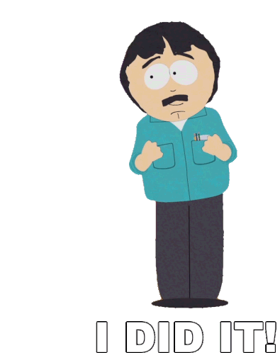 Randy Marsh from South Park triumphantly raises his arms, exclaiming 'I DID IT!' in a moment of proud achievement.
