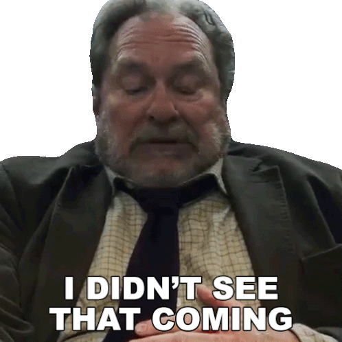Arthur Hammond, from Heads of State, reacts with surprise, stating 'I didn't see that coming' in this sticker.