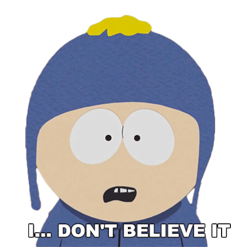 Craig Tucker from South Park expresses disbelief with the caption 'I... DON'T BELIEVE IT', his mouth agape in shock.