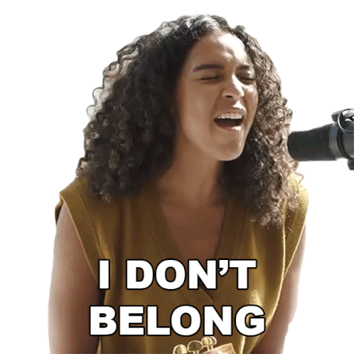 Arlissa passionately sings into a microphone, expressing feelings of not belonging with the on-screen text "I DON'T BELONG".