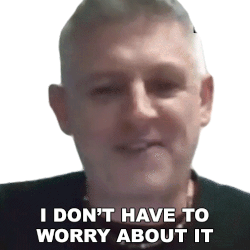 Kev Crane confidently states 'I Don't Have To Worry About It' in this animated sticker, expressing a carefree attitude.