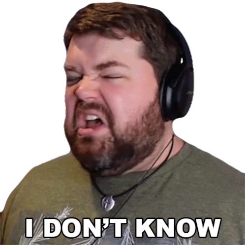 Brian Hull, wearing headphones, shrugs with a confused expression, stating 'I DON'T KNOW' in this animated sticker.
