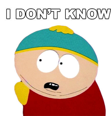 Eric Cartman from South Park shrugs with a confused expression, stating 'I don't know'.