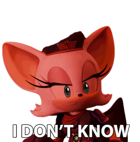 Rouge The Bat from Sonic Prime shrugs with an uncertain expression, conveying 'I don't know' with a visible caption.