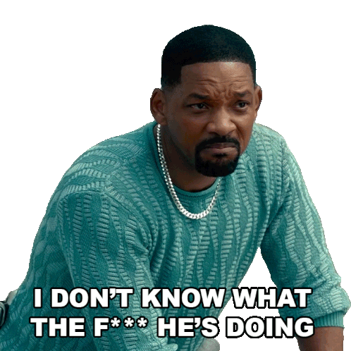 Mike Lowrey, played by Will Smith, expresses confusion and frustration, exclaiming, "I don't know what the f*** he's doing."