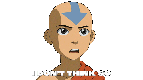 Aang from Avatar: The Last Airbender expresses doubt, saying 'I don't think so' in this animated sticker.