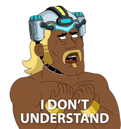 Renzo from Farzar, wearing a futuristic helmet, looks confused with his mouth open, saying 'I DON'T UNDERSTAND'.