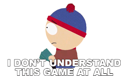 Stan Marsh from South Park looks confused while holding cards, exclaiming, 'I DON'T UNDERSTAND THIS GAME AT ALL'.