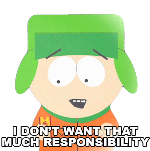 Kyle Broflovski from South Park expresses his reluctance with the caption "I don't want that much responsibility."