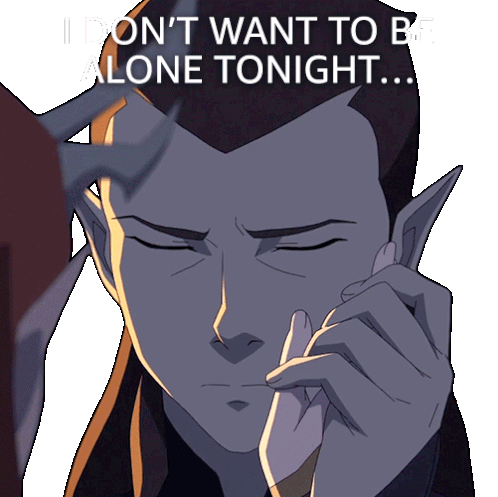 Vax'Ildan from The Legend of Vox Machina looking sad and asking, 'I don't want to be alone tonight... Do you?'