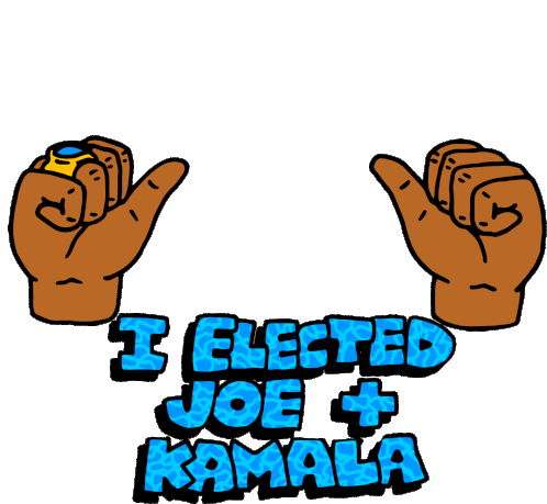 Animated sticker of a blue face mask with 'Biden Harris 2020' and stars, representing Joe Biden and Kamala Harris.