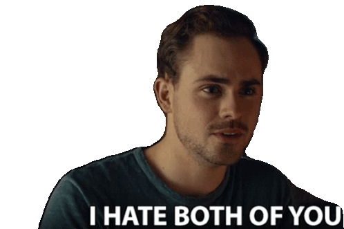 Dacre Montgomery expresses strong dislike, saying 'I Hate Both Of You' with a serious and annoyed expression.