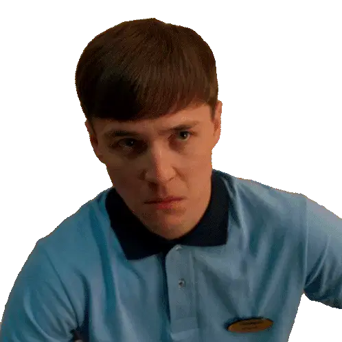 Officer Sam Rhodes, played by Louis Boyer, looks serious and concerned, delivering the impactful line 'I have to tell you something'.