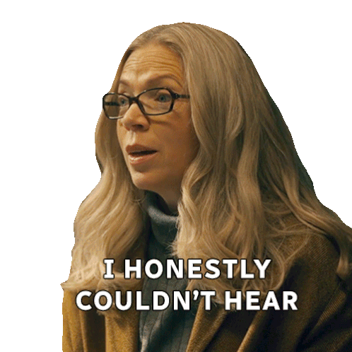 Abigail Richards, a woman with long blonde hair and glasses, says 'I honestly couldn't hear who you were.'
