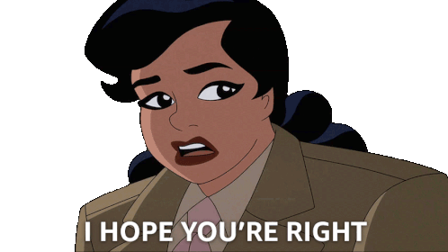 Renee Montoya from Batman: Caped Crusader expresses doubt, saying 'I hope you're right' with a concerned look.