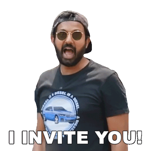 Faisal Khan, also known as Fasbeam, points directly at the viewer, emphatically saying "I INVITE YOU!" with a smile.