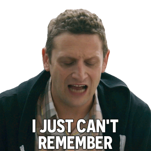 Tim Robinson from 'I Think You Should Leave' expresses confusion with the caption 'I Just Can't Remember'.
