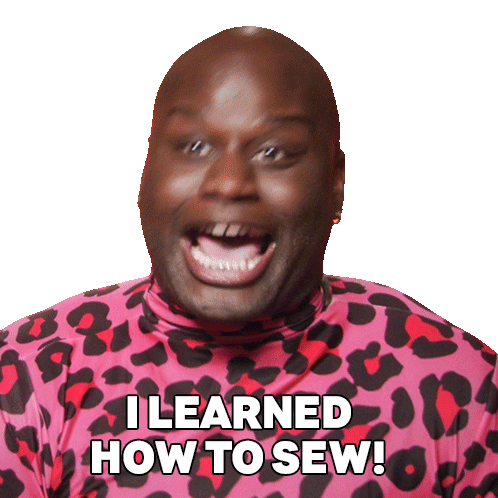 Lala Ri from RuPaul's Drag Race All Stars excitedly exclaims that she learned how to sew, showing a surprised expression.