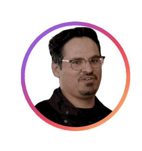 Michael Peña, wearing glasses, enthusiastically exclaims "I F@#%ING LOVE CATS" within a playful cat-themed frame.