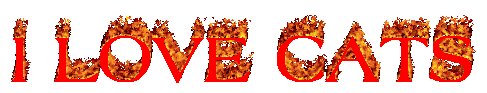 Animated text 'I Love Cats' appears in vibrant, flickering flames, expressing affection for felines.