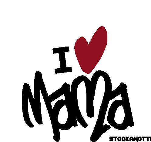 An animated sticker featuring 'I Love Mama' in a bold, graffiti-style font with a red heart, perfect for Mother's Day or family love.