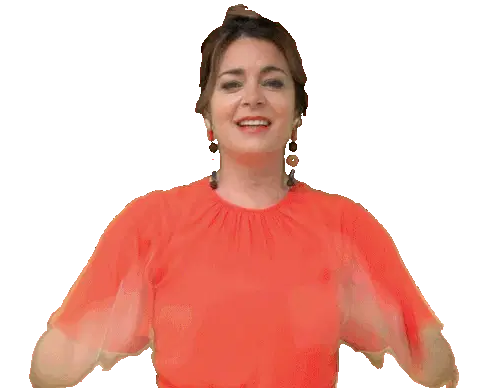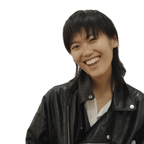 A cheerful woman from Jakarta Fashion Week smiles and forms a heart shape with her hands, sending love and positive vibes.