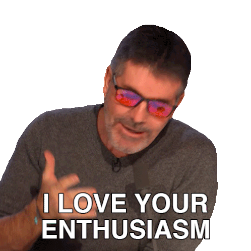 Simon Cowell expresses his appreciation, saying 'I love your enthusiasm' with a hand gesture and a smile.