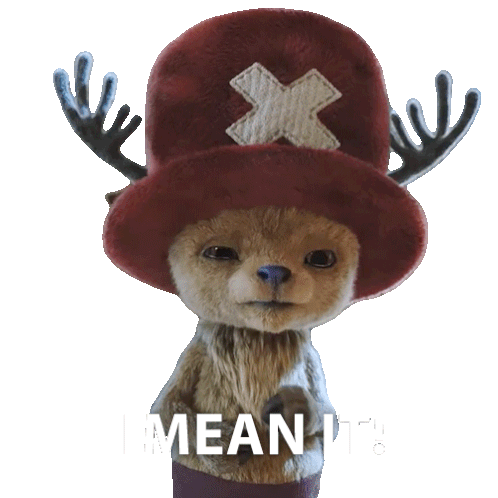 Tony Tony Chopper, the adorable reindeer from One Piece, emphatically states 'I MEAN IT!' in this animated sticker.