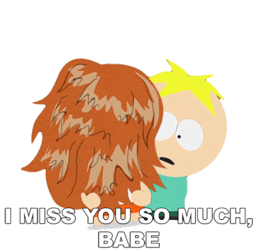 Butters Stotch from South Park with a hairy creature, expressing 'I Miss You So Much, Babe'. A sweet message from Butters and Lexus Martin.