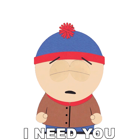 Stan Marsh from South Park looks worried with the text "I NEED YOU" appearing, expressing a strong need or dependence.
