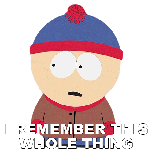 Stan Marsh from South Park reacts with a neutral then surprised expression, stating 'I Remember This Whole Thing'.