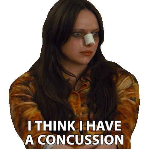 Alyssa Nielsen, with a bandaged nose, states 'I THINK I HAVE A CONCUSSION' in this dramatic sticker.