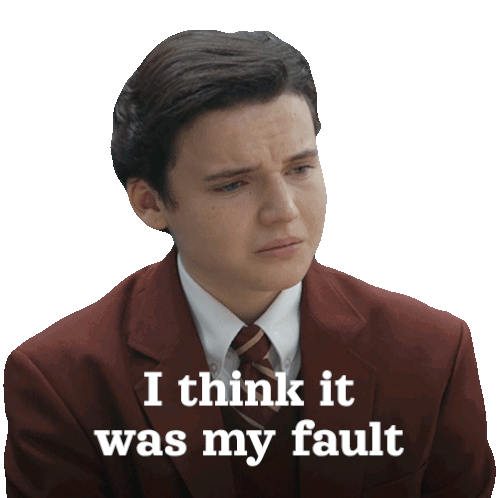 Mark, played by Benjamin Evan Ainsworth, in a suit and tie, looks remorseful, saying 'I think it was my fault'.