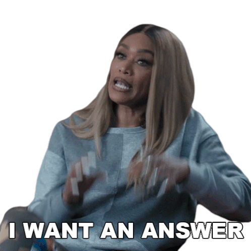 Tami Roman as Chantel, with an intense expression and hand gestures, demands an answer to her question.