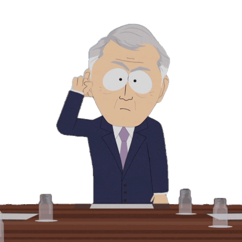 The Cdc Chairman from South Park, looking stern, slams his fist on the table and demands answers.