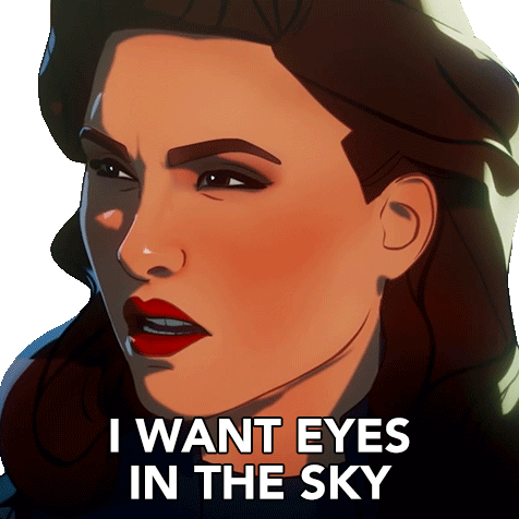 Captain Carter from Marvel's What If? series, with a determined expression, stating 'I want eyes in the sky.'