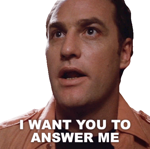 Steve Freeling from Poltergeist demands an answer, looking intently with the caption 'I WANT YOU TO ANSWER ME'.