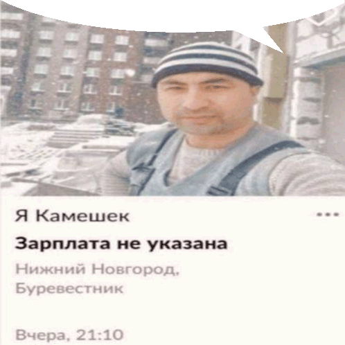 a man wearing a striped hat takes a selfie with a speech bubble above him