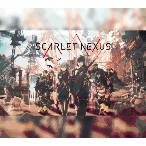 Iaakra26 presents a dynamic animated sticker featuring various characters and art from the action RPG Scarlet Nexus.