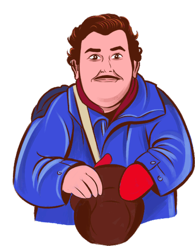 An animated sticker of John Candy, created by Travis Falligant of Ibtrav Artworks, in a blue winter coat.