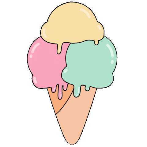 A delightful animated sticker featuring a colorful ice cream cone with three melting scoops in yellow, pink, and mint green.