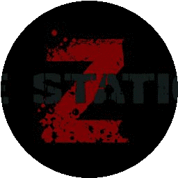 A dark, circular animated sticker featuring the distressed, blood-splattered red 'N' and other letters of the Ice Station Z logo, spinning.