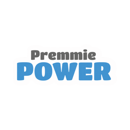 Animated logo for Ickle Pickles Charity, featuring 'Premmie POWER' text changing colors from blue to orange to pink.