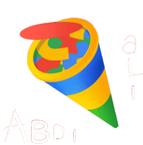 An animated party horn with 'Ali Abdi' text, celebrating with a burst of confetti. Perfect for a fun, festive message.