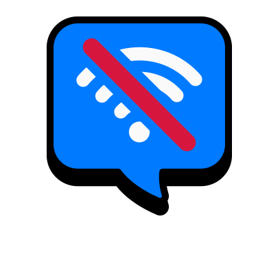 A blue speech bubble icon with a white Wi-Fi symbol crossed out by a red line, indicating no internet connection.