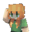 Minecraft Alex, the iconic character, raises her arm in a friendly wave or salute in this animated sticker.