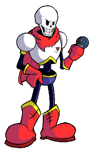 Papyrus from Undertale, in his Friday Night Funkin' style, stands idle with a microphone, scarf blowing and foot tapping.