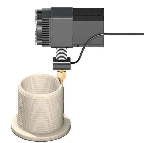 Animated sticker showing an Igus 3D printer nozzle extruding material to create a cylindrical object layer by layer.