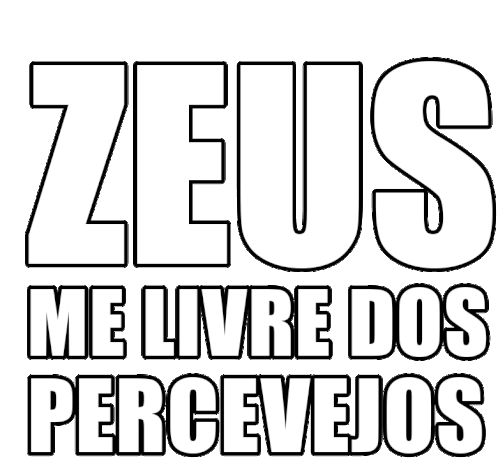 Ihara Zeus sticker featuring a plea to Zeus to be freed from bed bugs, with the text 'ZEUS ME LIVRE DOS PERCEVEJOS'.