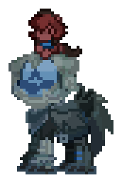 Pixel art sticker of an Ihnmaims character, inspired by Harlan Ellison's work, in Pony Town style.